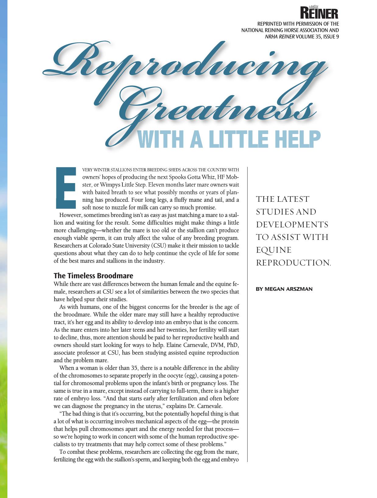 I enjoyed talking with the researchers at Colorado State University to get an update on what what reproductive milestones they’ve reached in recent years for the NRHA Reiner magazine. Things like helping older broodmares stay healthy, and how to keep the golden stallions viable for years to come.