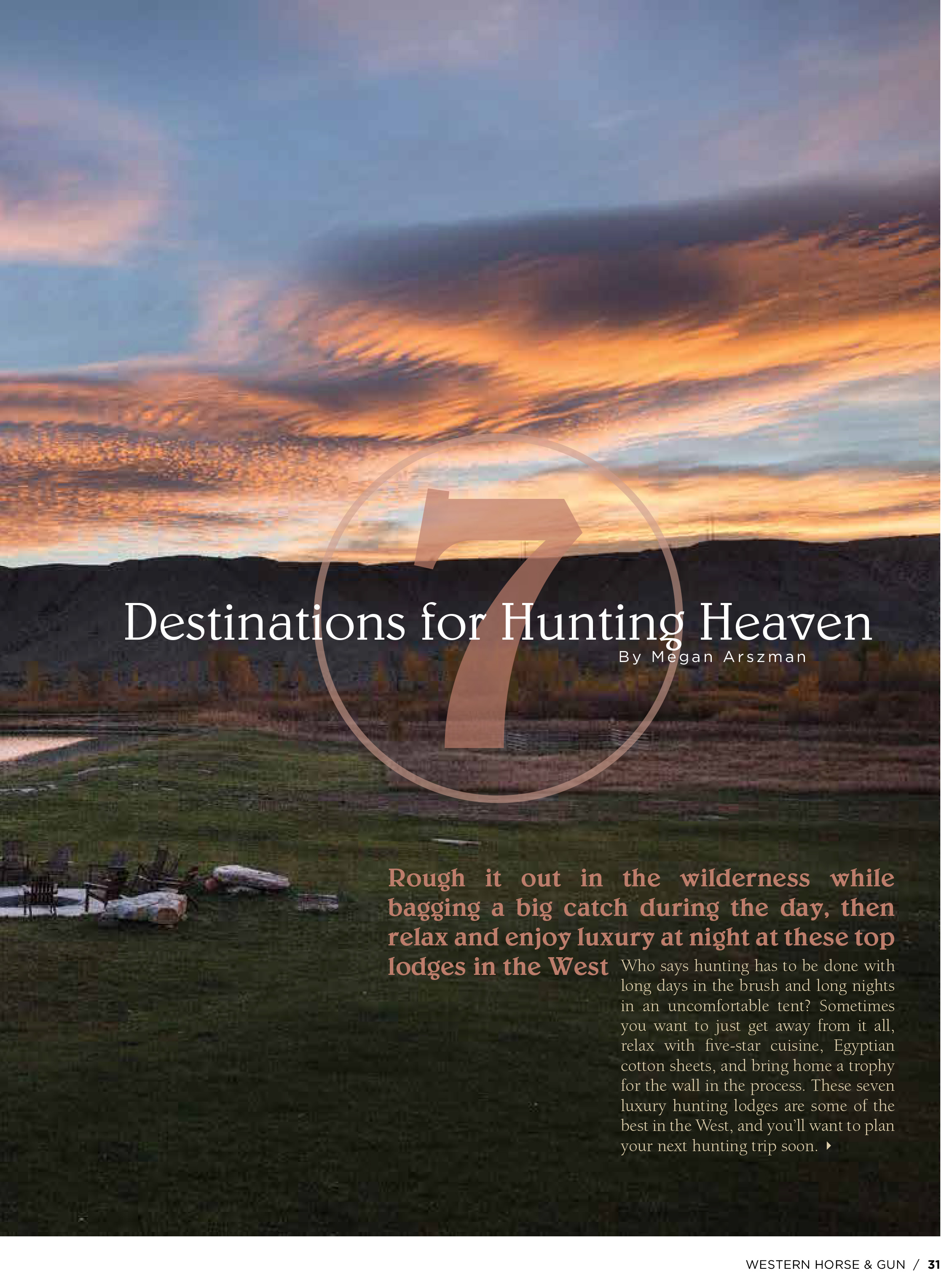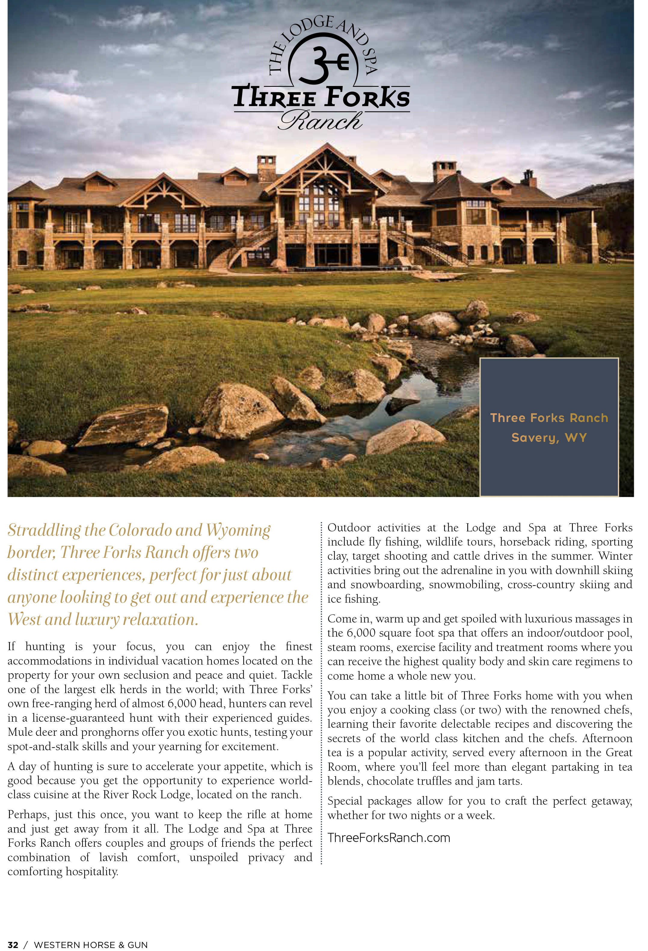 Who says hunting has to be done with long days in the brush and long nights in an uncomfortable tent? Sometimes you want to just get away from it all, relax with five-star cuisine, Egyptian cotton sheets, and bring home a trophy for the wall in the process. Doesn’t sound like your typical hunting trip? I highlighted your not-so-typical hunting lodges for Western Horse & Gun‘s October/November 2016 issue.